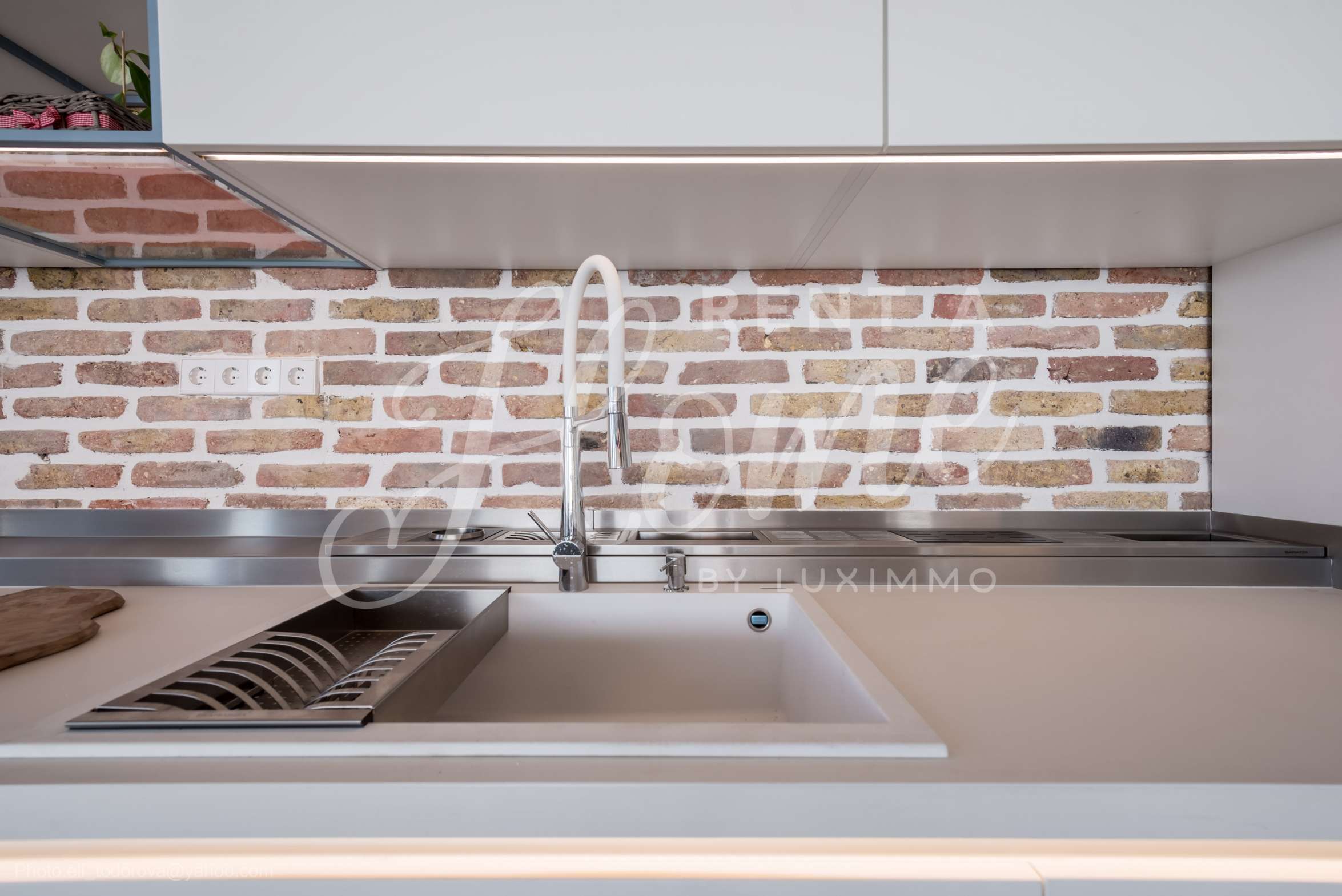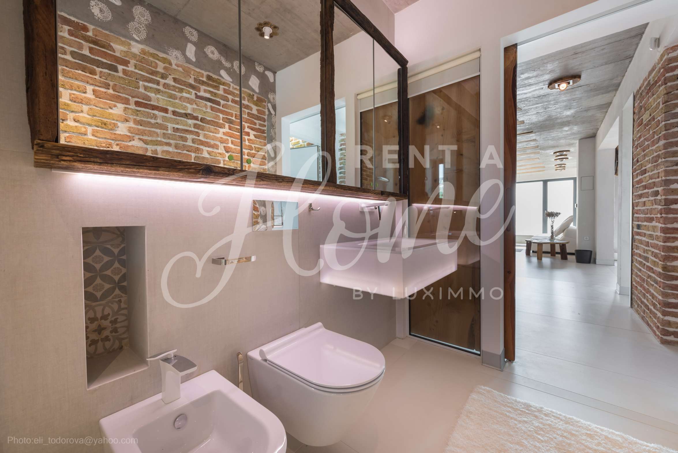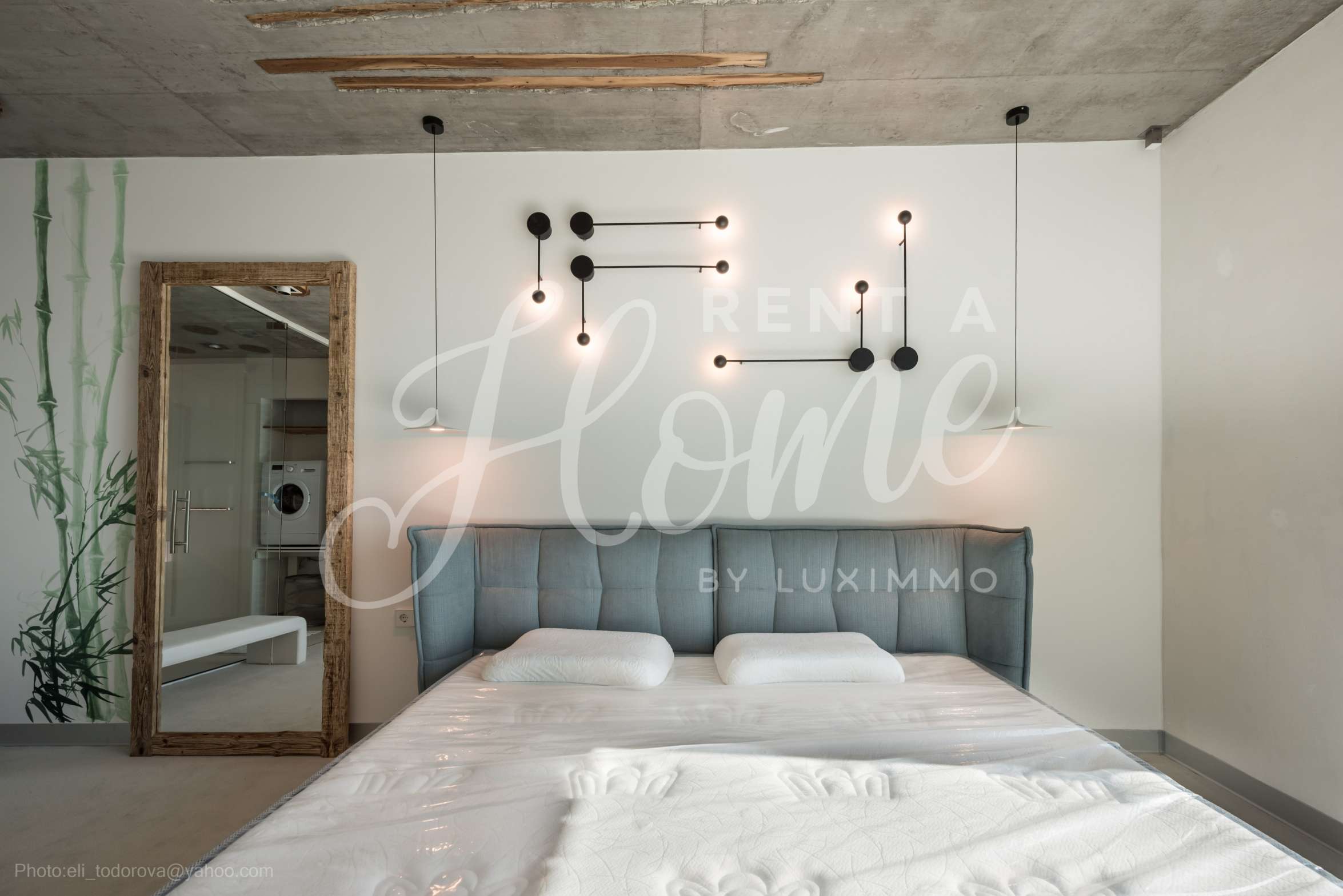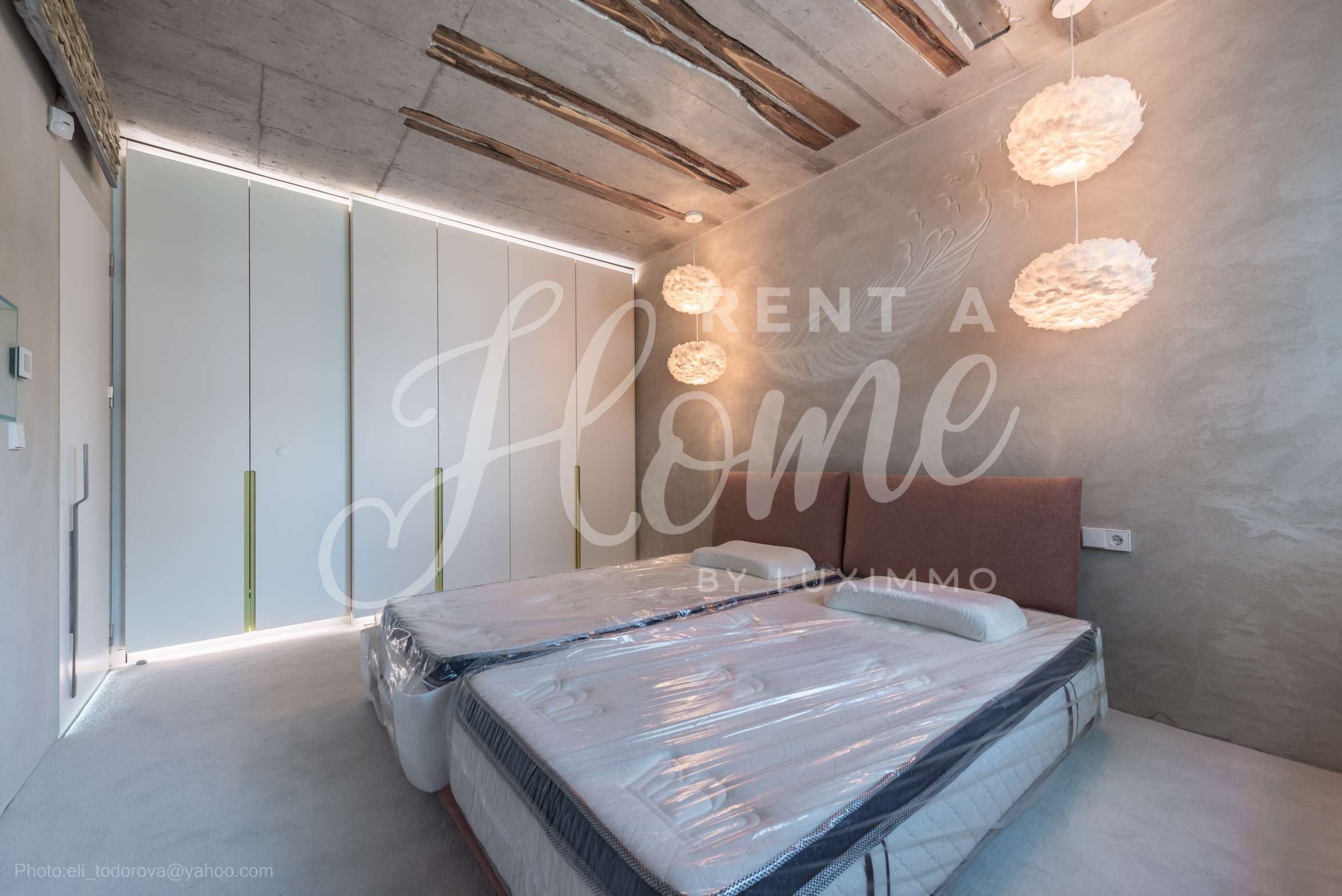 Дизайнът е уникален - естествен и модерен, предизвикателен и светъл, носещ посланието на автономност, релакс и морската атмосфера. В бетоновите плочи по тавана на апартамента са вградени естествени дървени орнаменти от акация. Тухлените стени и бетонът са използвани за естествена декорация, като са допълнително обработени, импрегнирани и грундирани. Мебели, кухня, матраци и дивани, атрактивни плочки, осветителни тела - всички са на известни италиански марки. Вниманието в трапезария е с акцент на екстравагантната маса, изработена по поръчка, от ценно и рядко дърво от Амазонка. Банята е отделена със стъклена врата, за изобилието на слънчева светлина, а всички санитарии са първокласно немско качество.