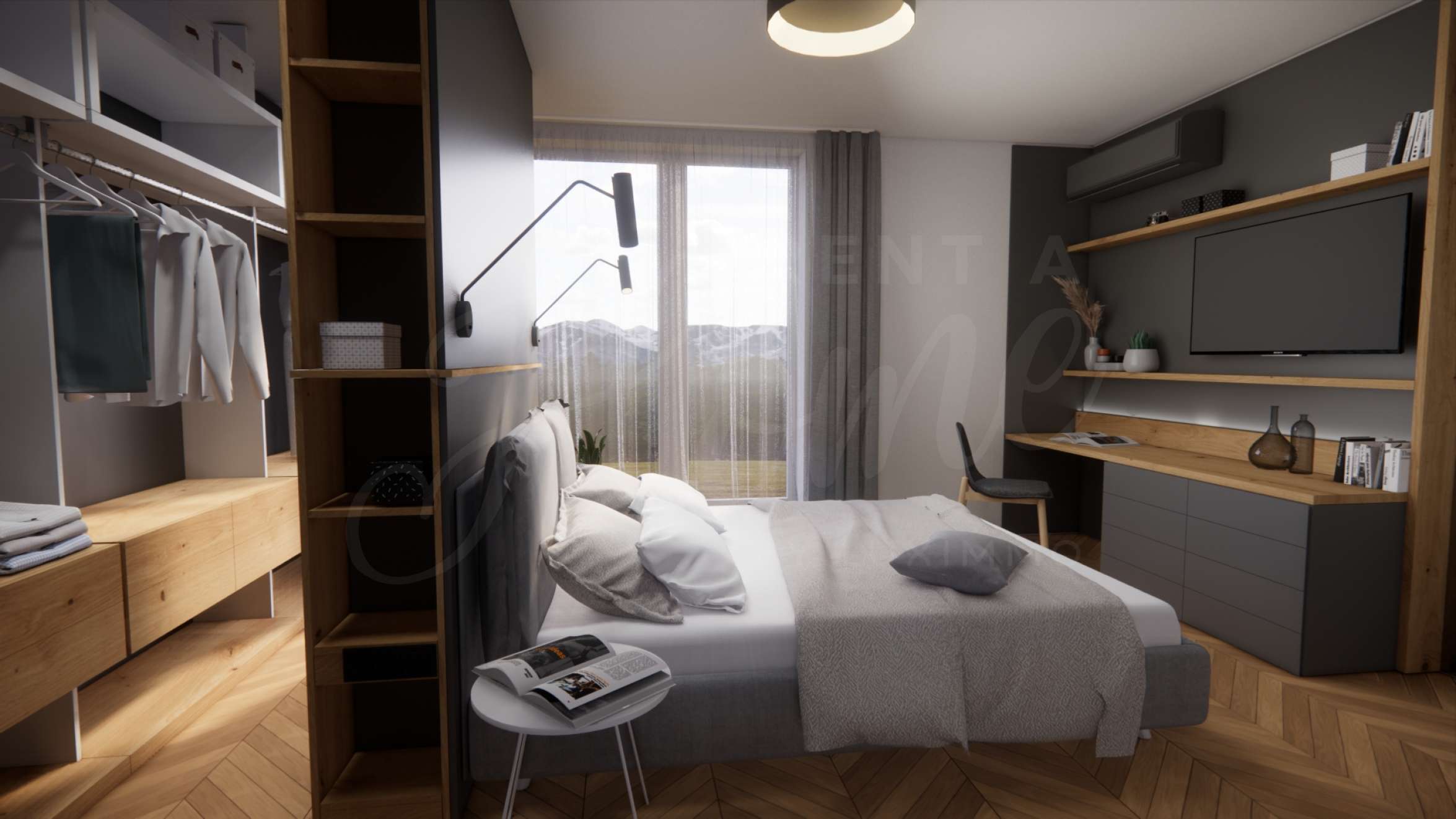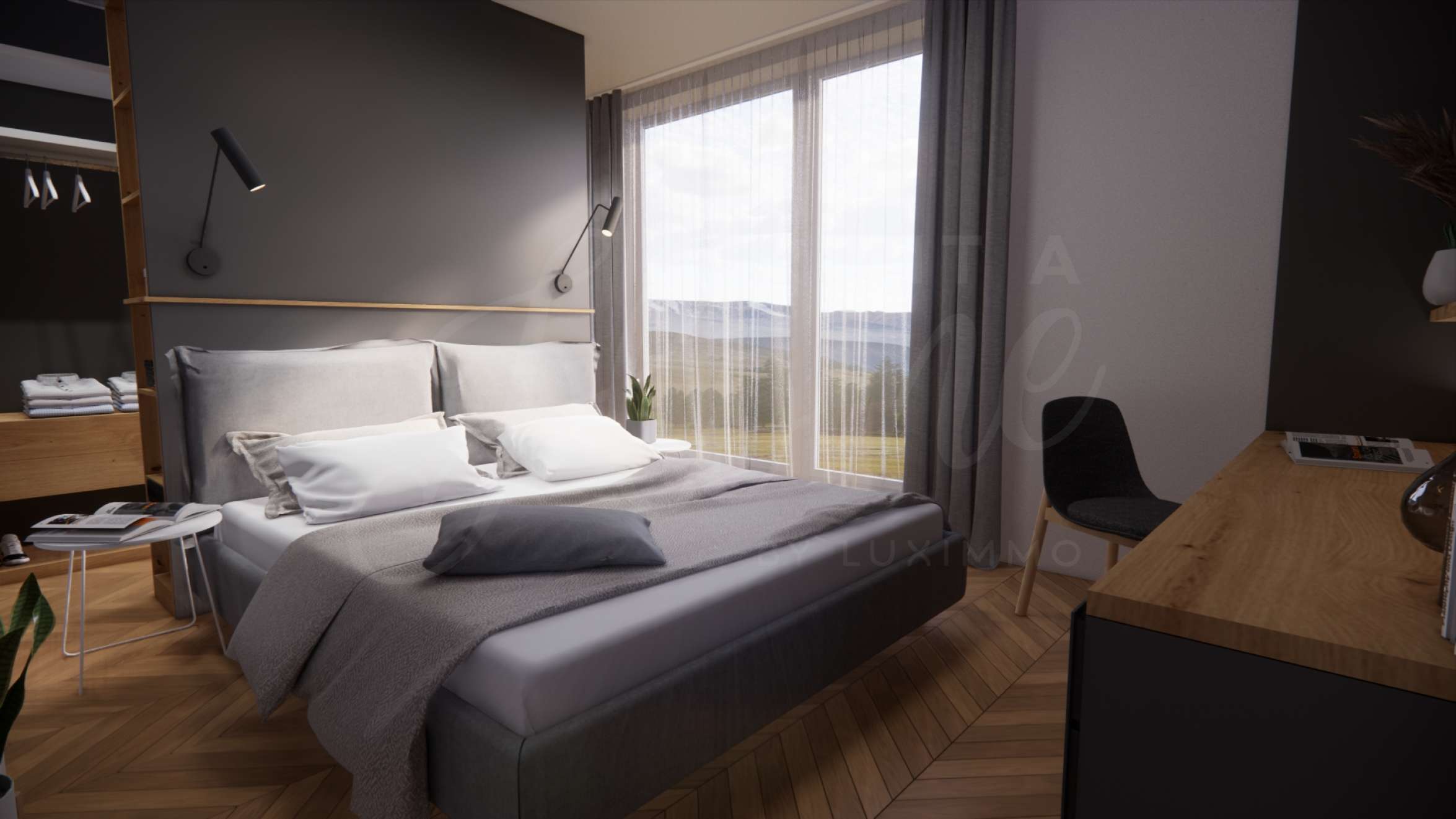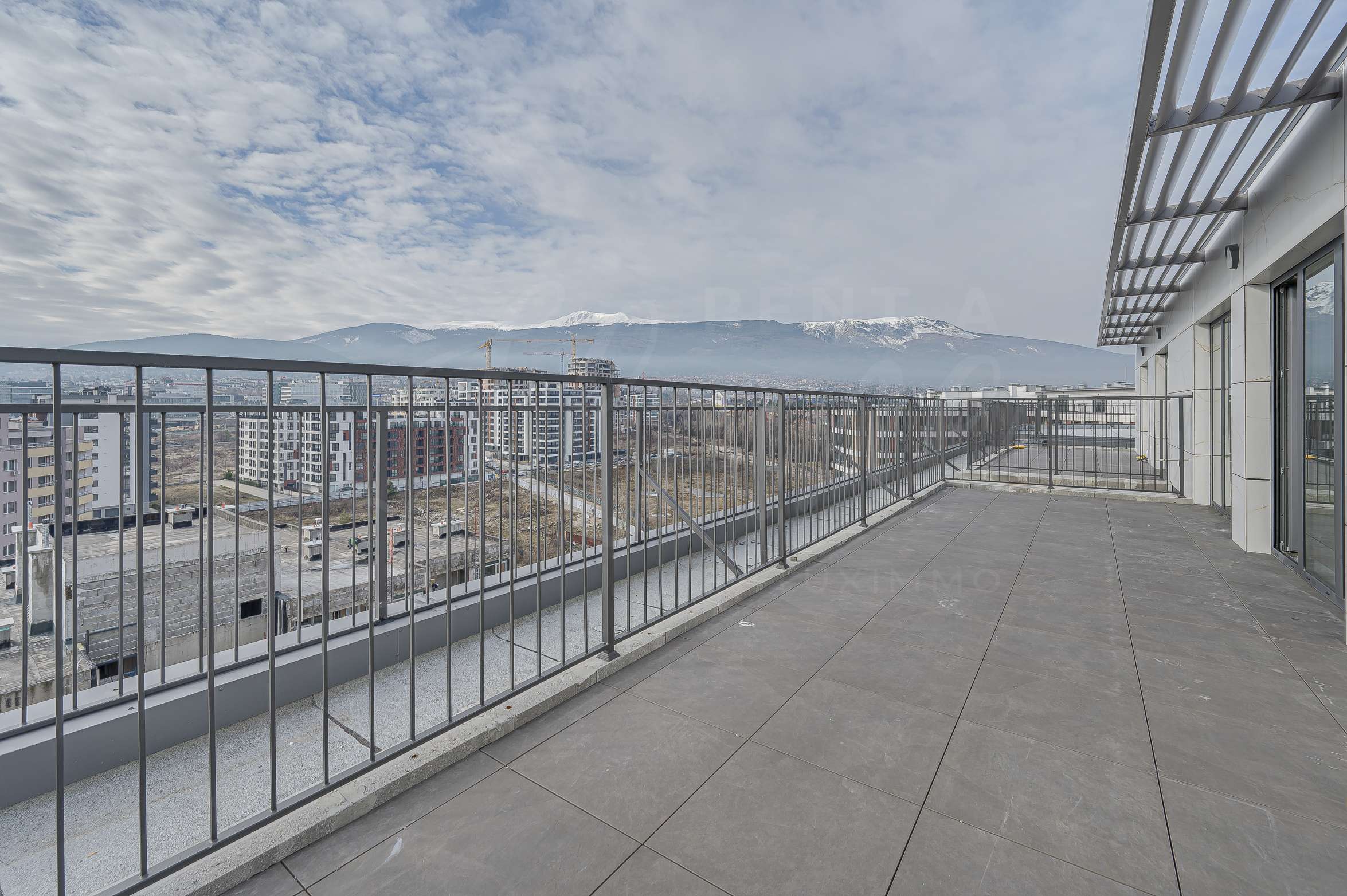• Панорамна тераса с достъп от дневната и спалнята.