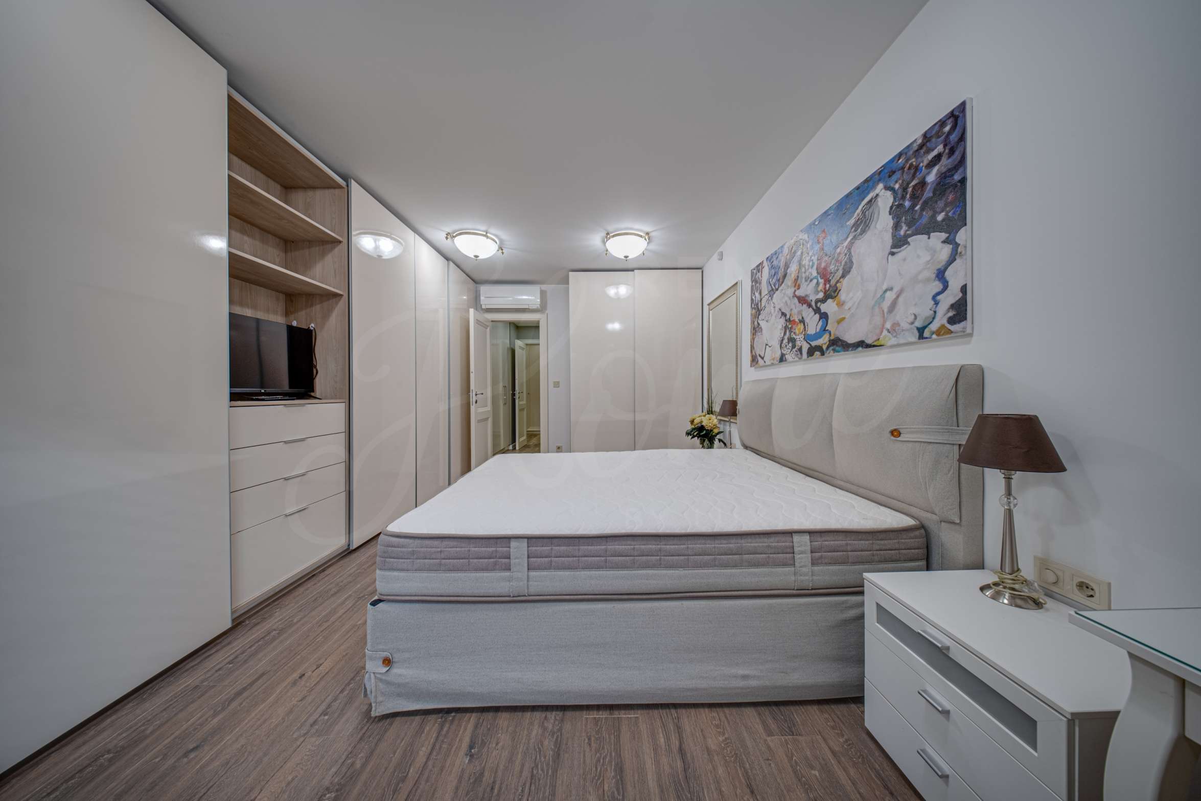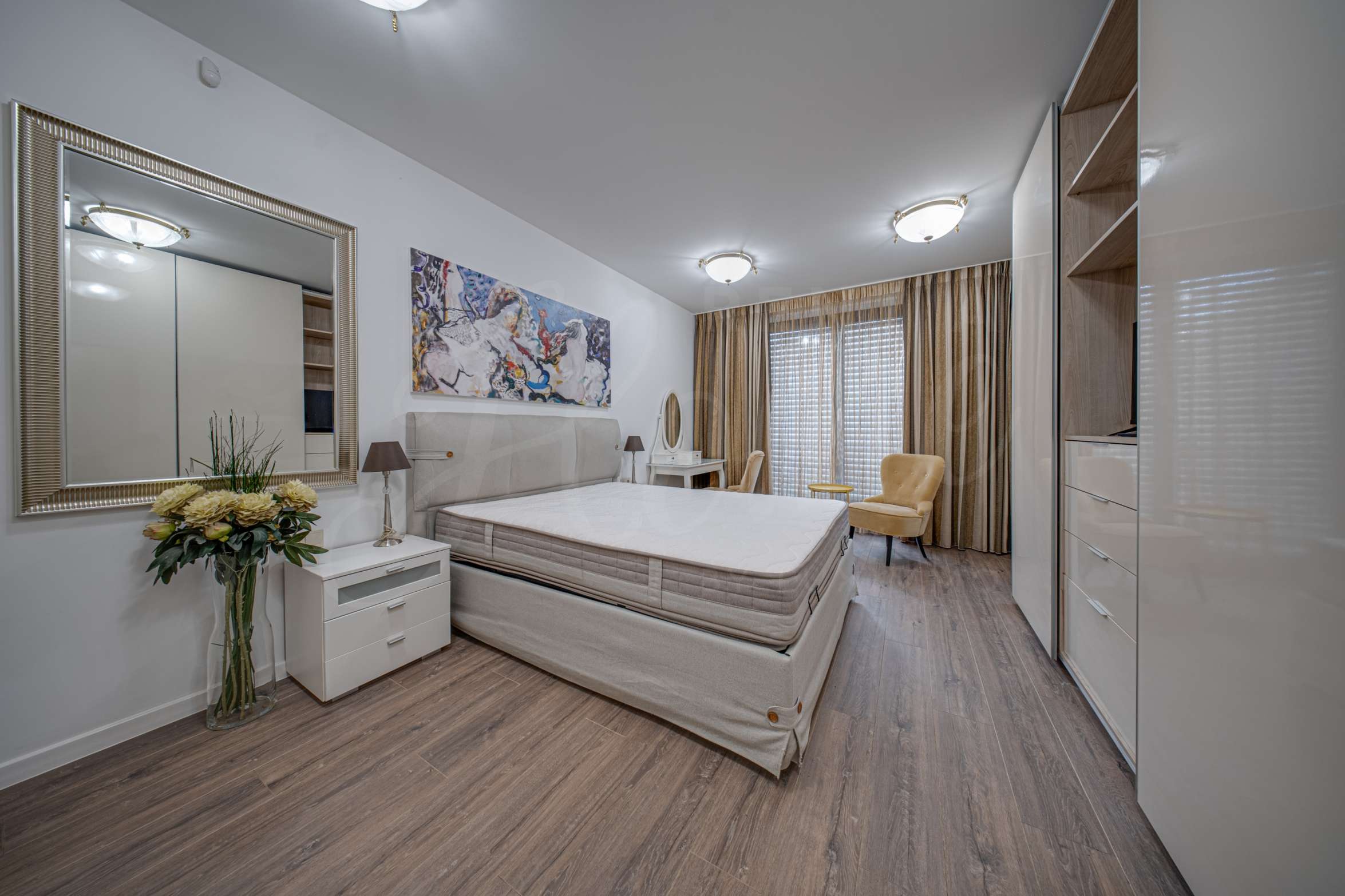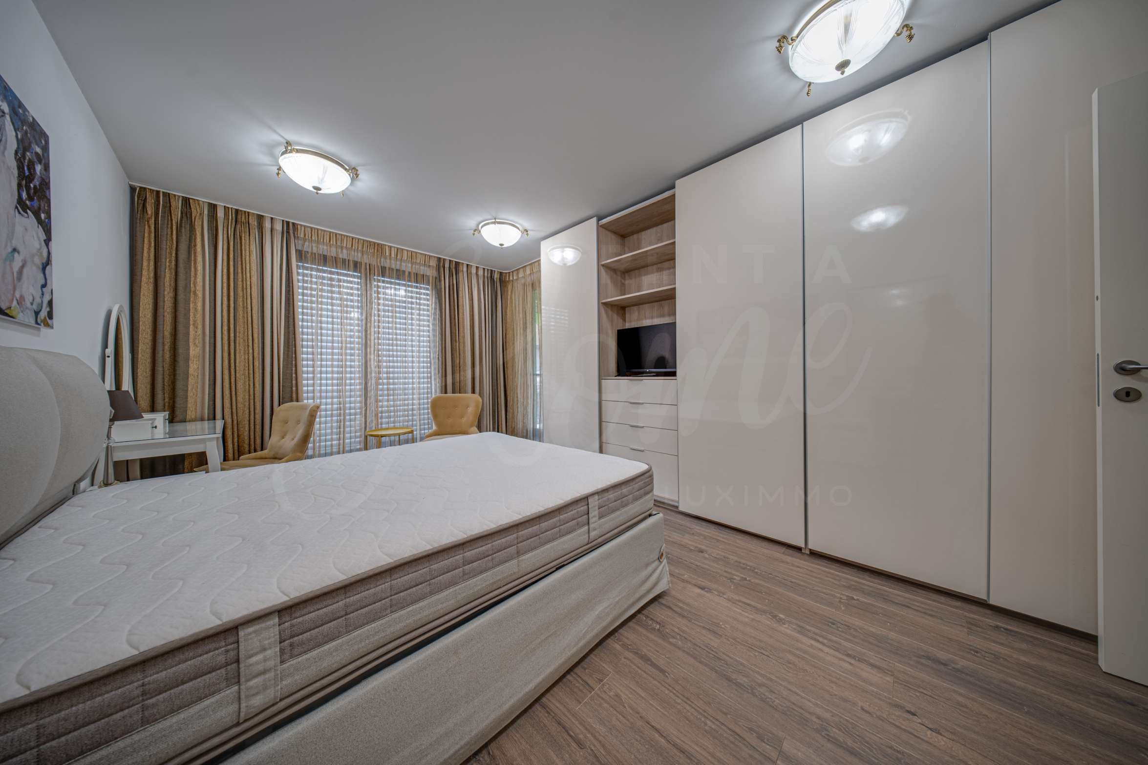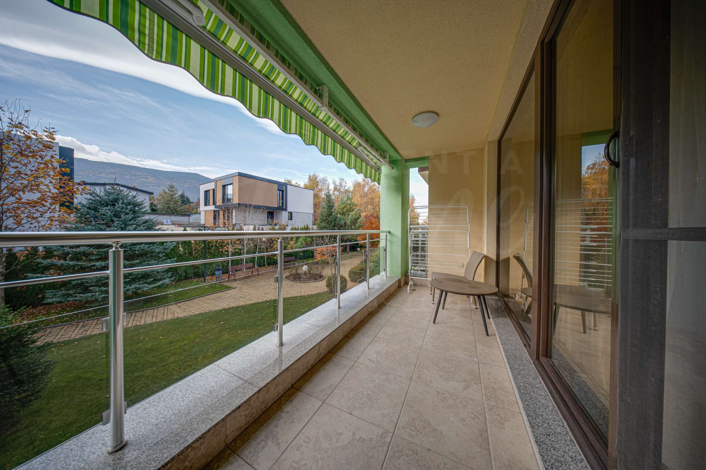 Апартаментът е с функционално разпределение и впечатлява с голяма дневна зона с кухненски бокс и трапезария, три самостоятелни спални, две бани, перално помещение и тераси с гледка към Витоша. Напълно обзаведен с висок клас мебели и електроуреди, той е готов за нанасяне – без компромис в удобството и стила.