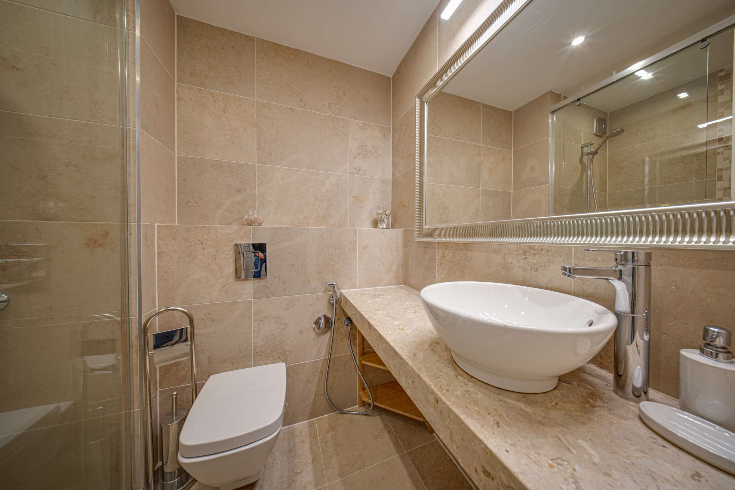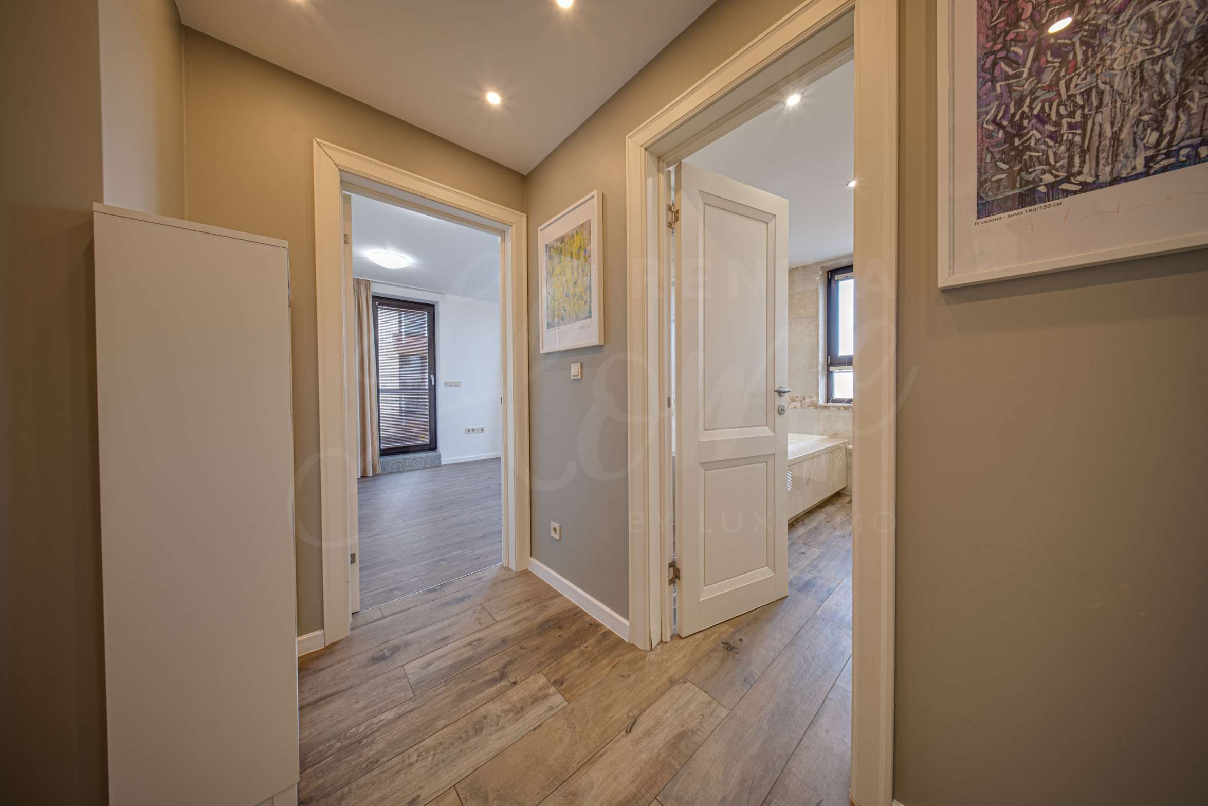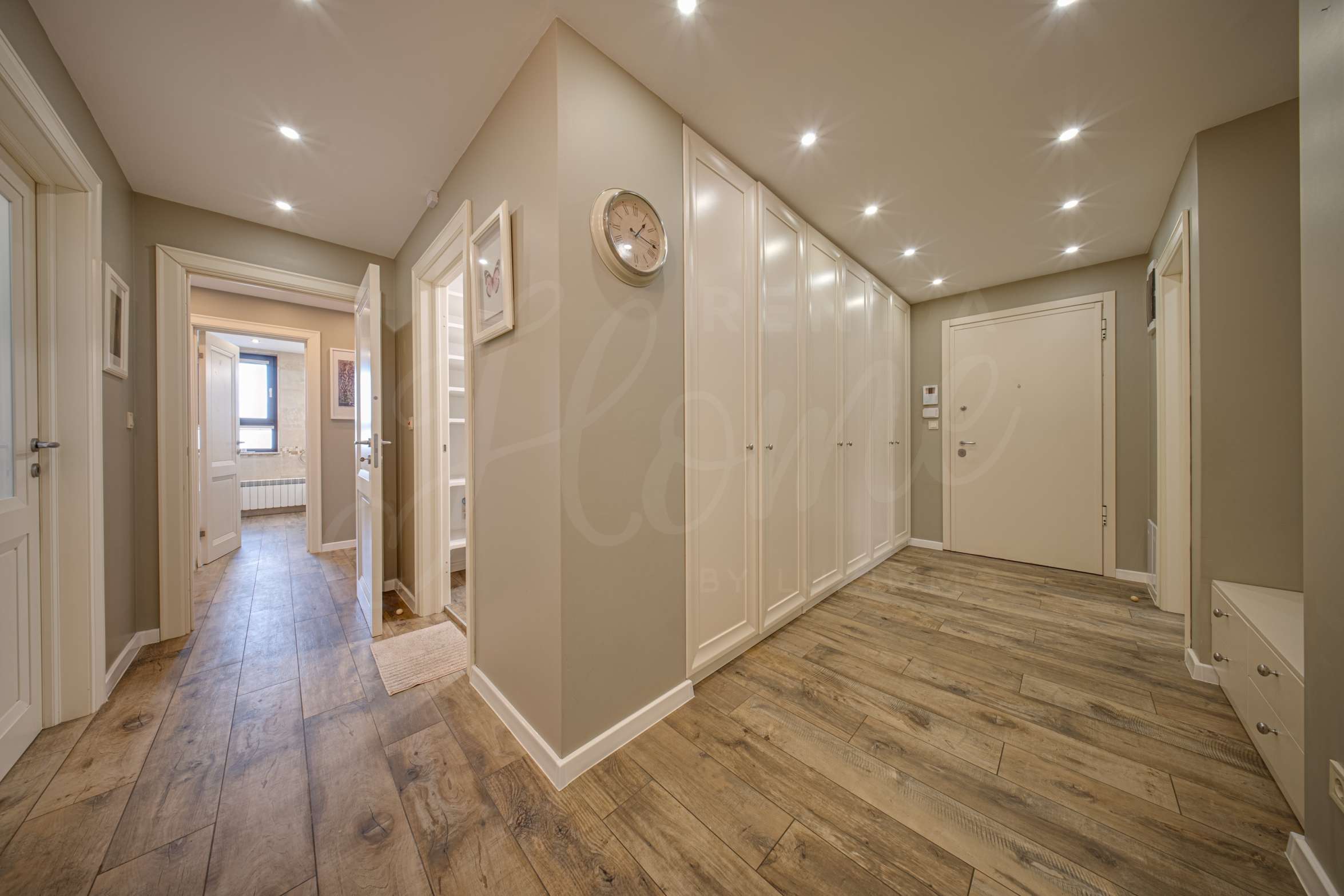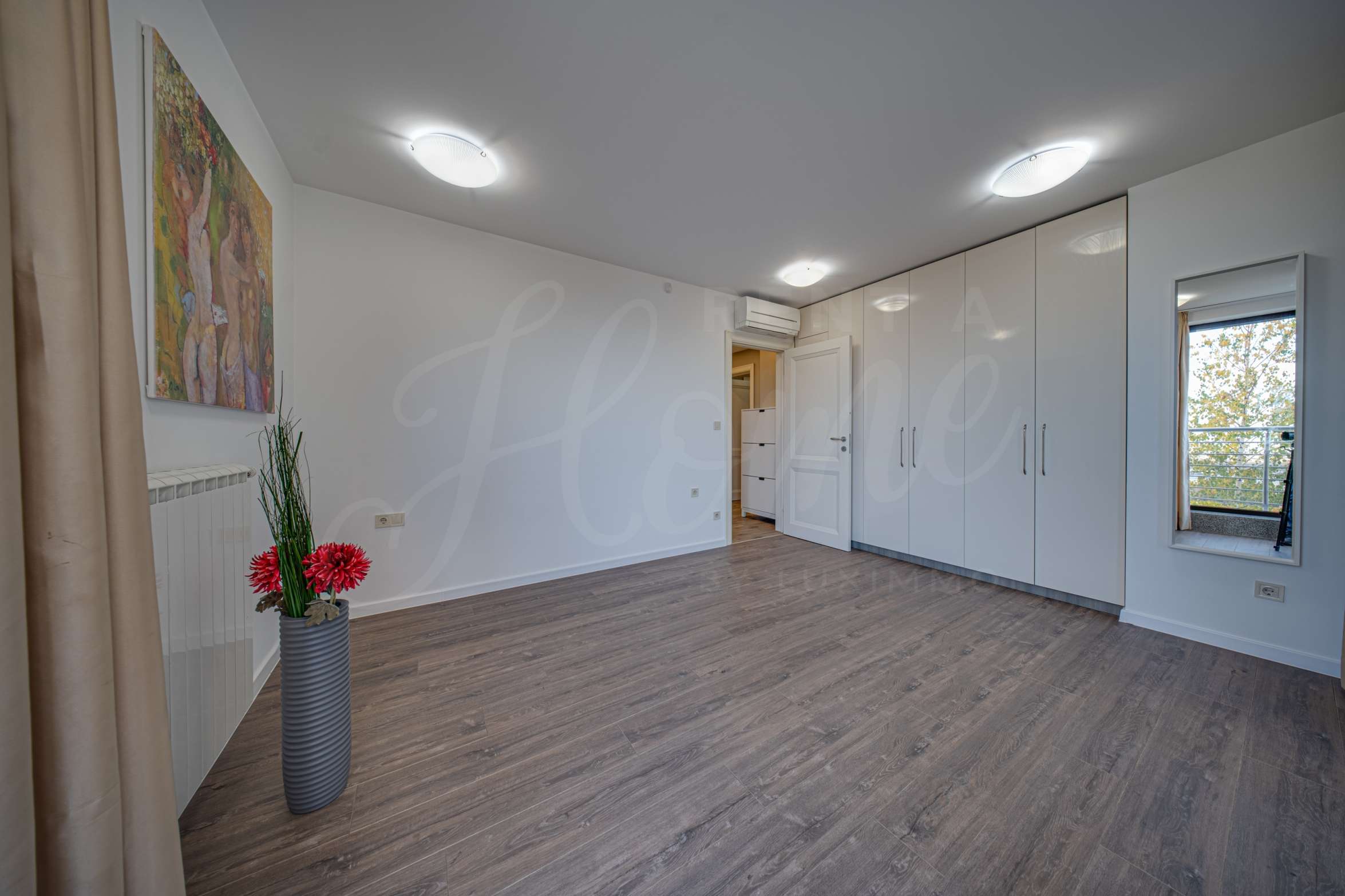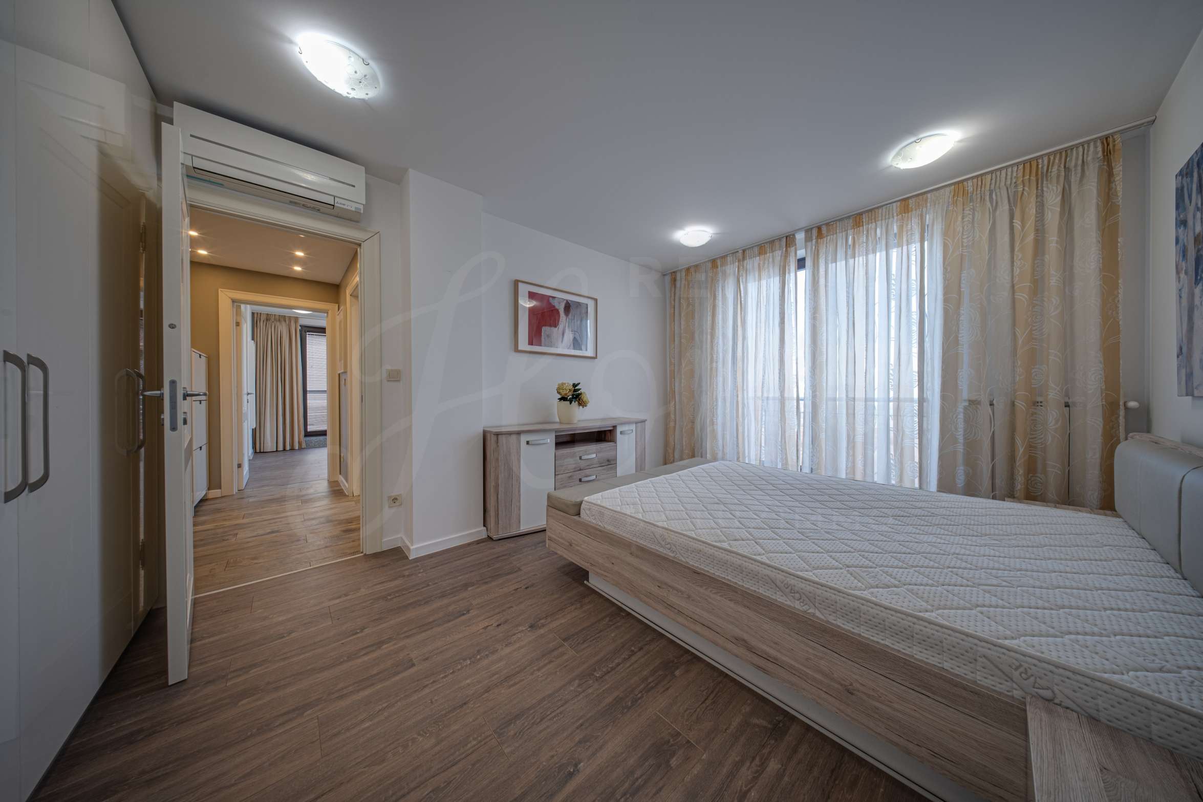 Апартаментът е с функционално разпределение и впечатлява с голяма дневна зона с кухненски бокс и трапезария, три самостоятелни спални, две бани, перално помещение и тераси с гледка към Витоша. Напълно обзаведен с висок клас мебели и електроуреди, той е готов за нанасяне – без компромис в удобството и стила.