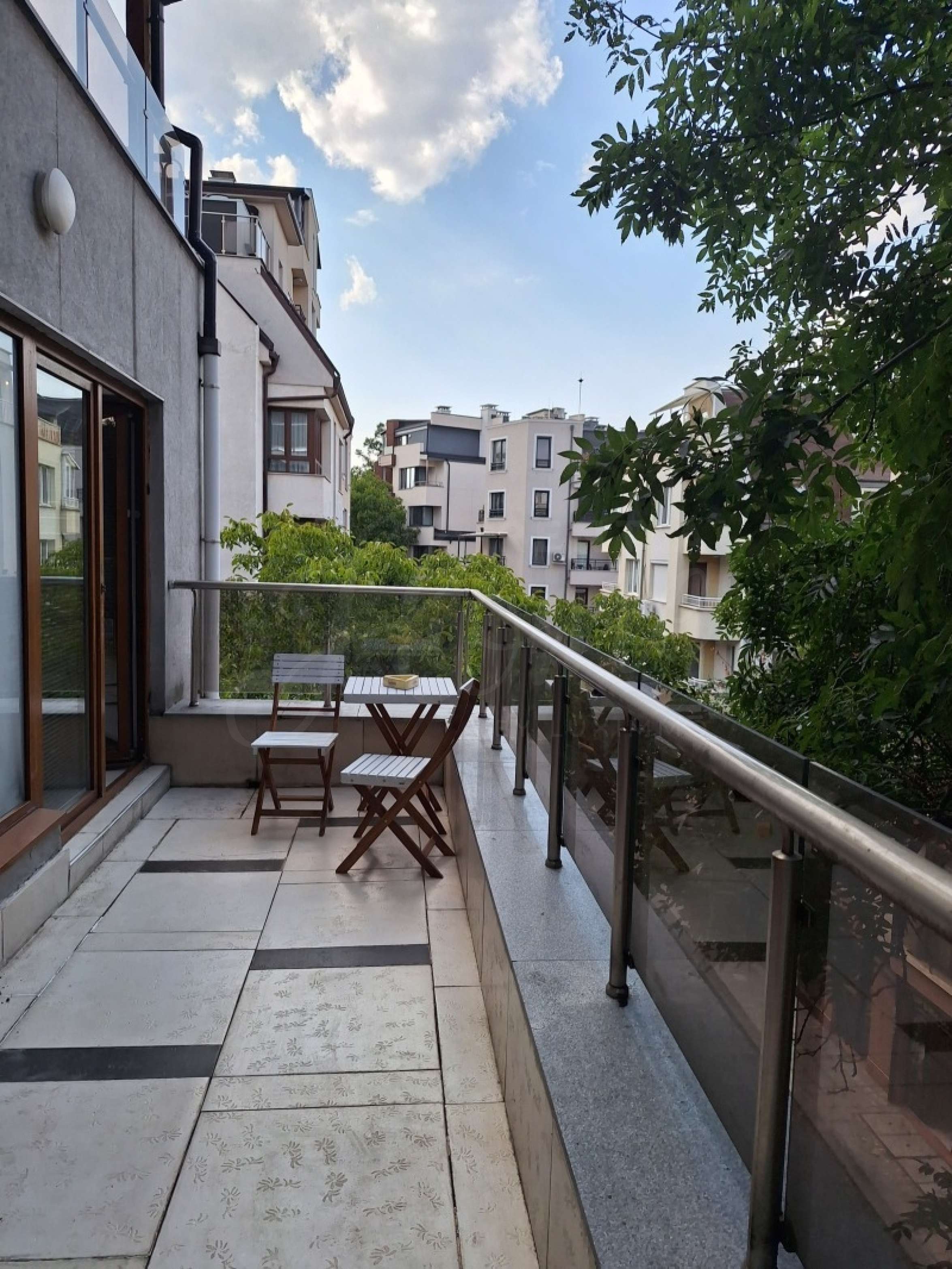 Имотът е разположен на 3-ти етаж в модерна сграда с асансьор, отлично поддържани общи части и само четири апартамента. Сградата се намира на тиха улица „Ведрина“, в непосредствена близост до Ловен парк и Борисовата градина.