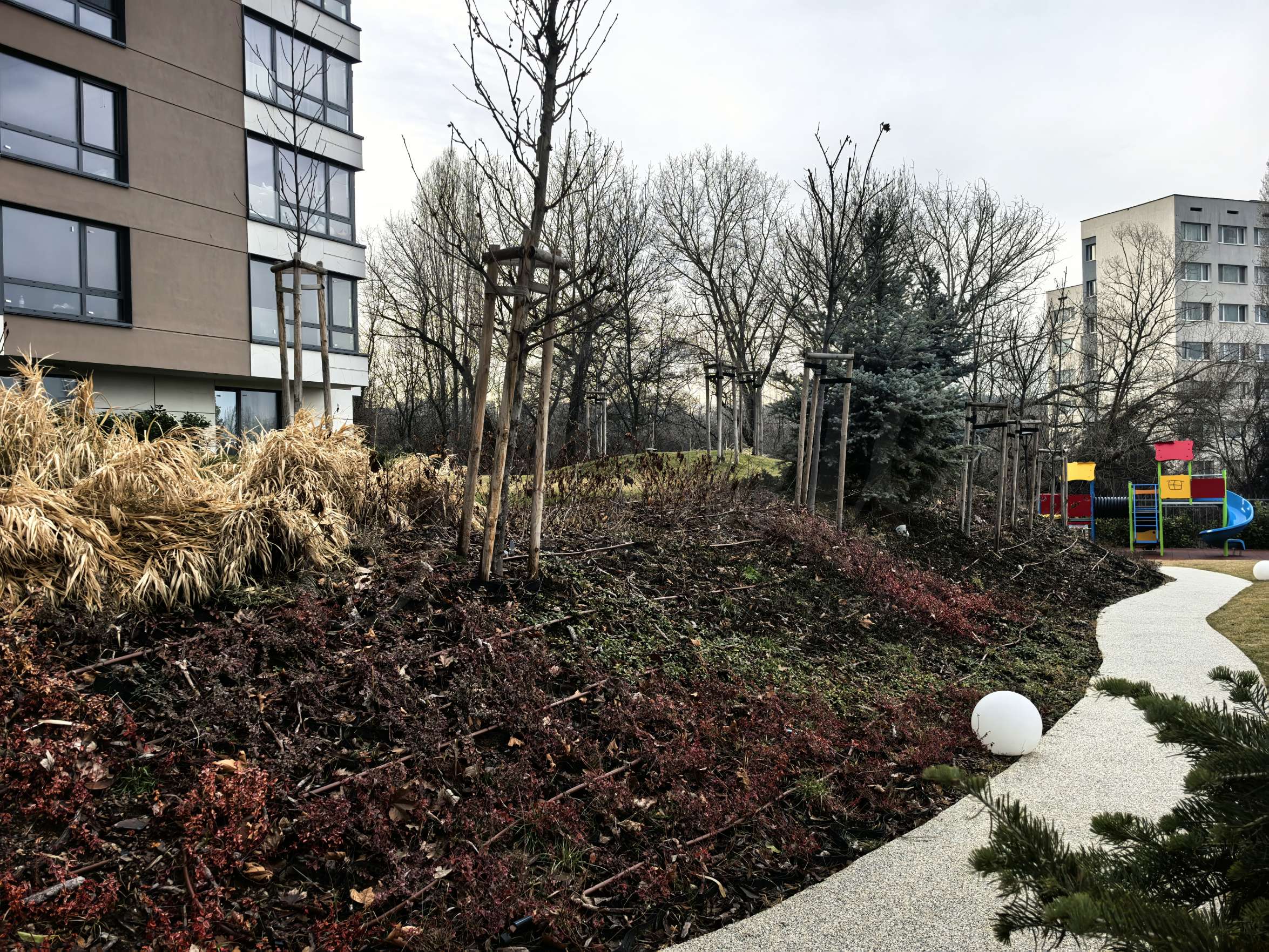 Комплексът е от затворен тип, с денонощен контролиран достъп, създаден е с концепция за спокойна, зелена и сигурна среда за живот. На разположение на живущите са богато озеленени паркови пространства, детска площадка, външен фитнес, алеи за разходка и отдих.
