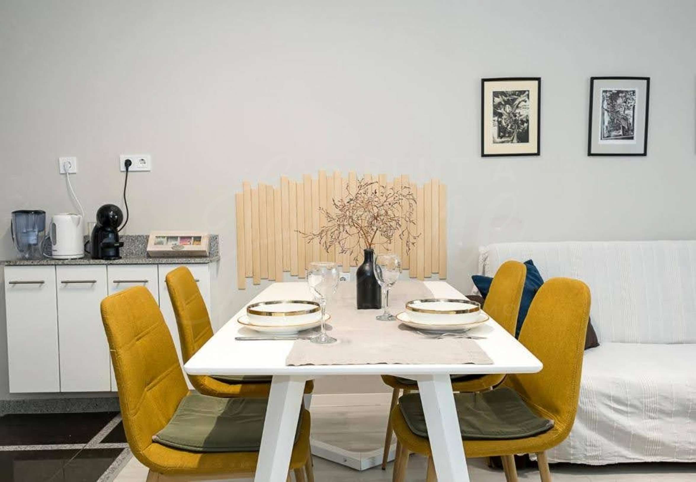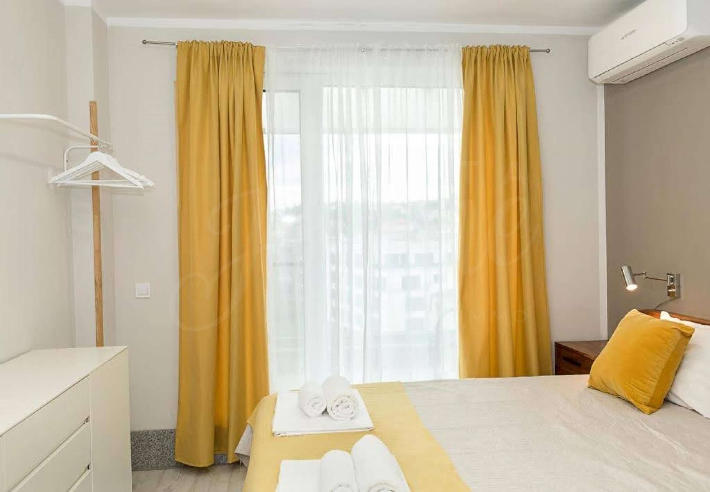 • Отлично ново състояние - напълно обзаведен и оборудван с мебели, електроуреди, климатици, готов за нанасяне.