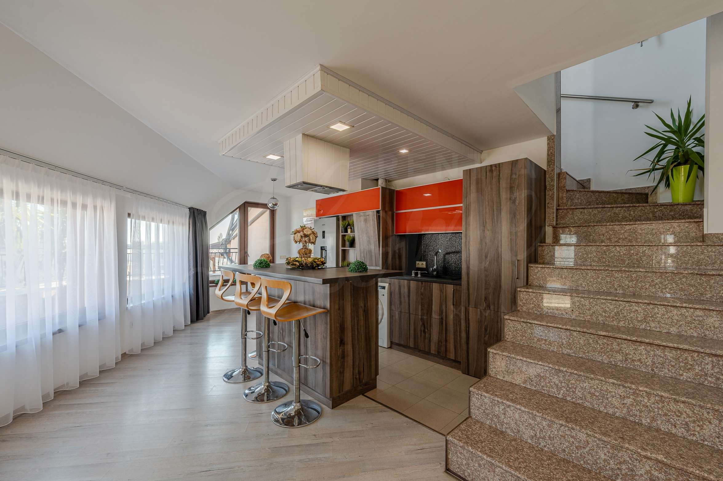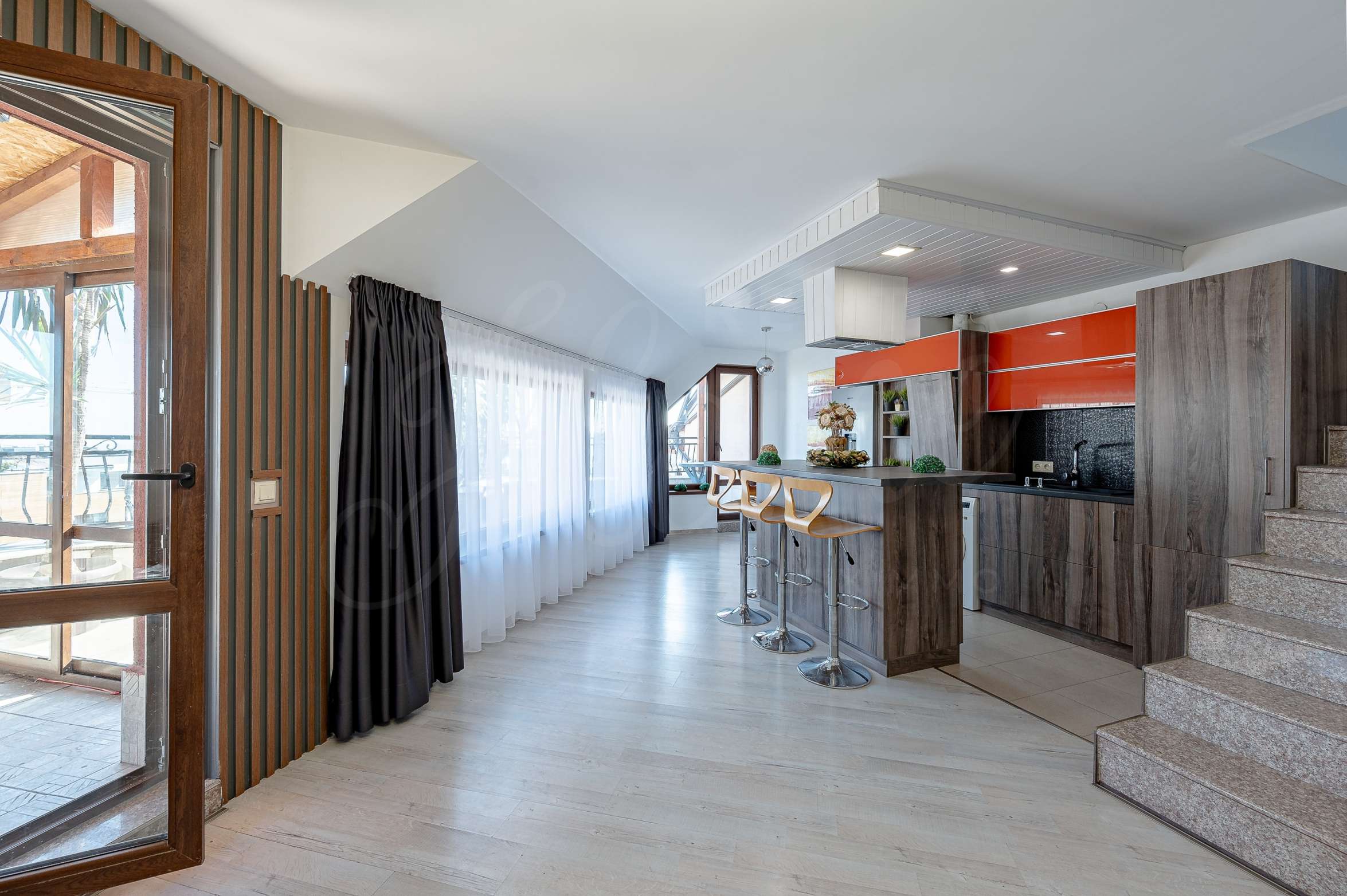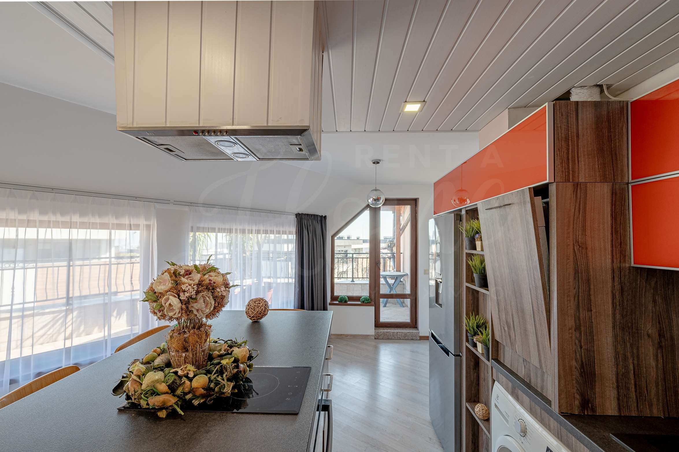 Жилището се предлага обзаведено и оборудвано, с климатизация, качествена дограма с троен стъклопакет и добра топлоизолация, което осигурява комфорт през всички сезони и оптимална енергийна ефективност. Спалнята е с допълнителна звукоизолация, а терасите са озеленени и оформени като приятни зони за отдих.
