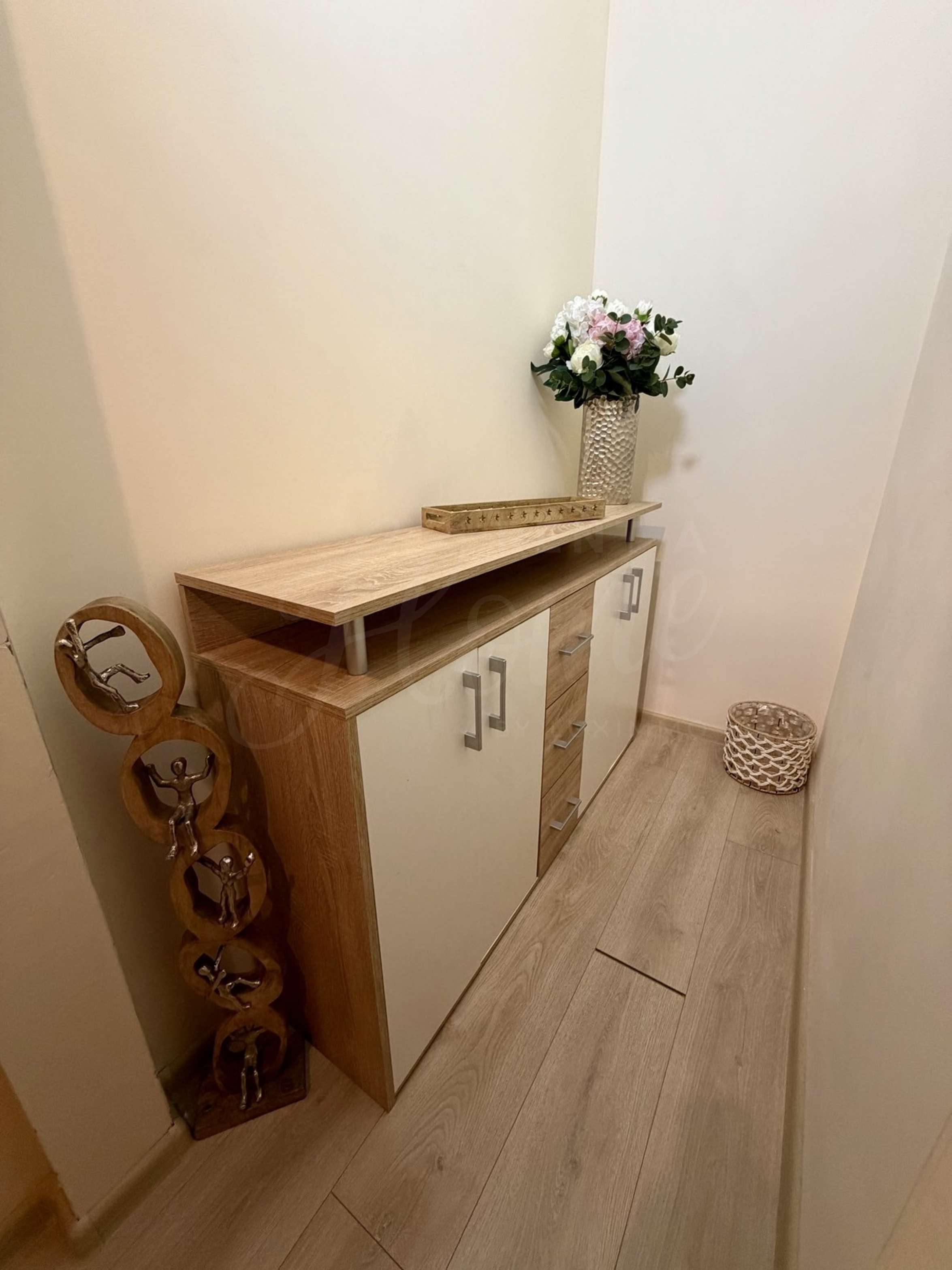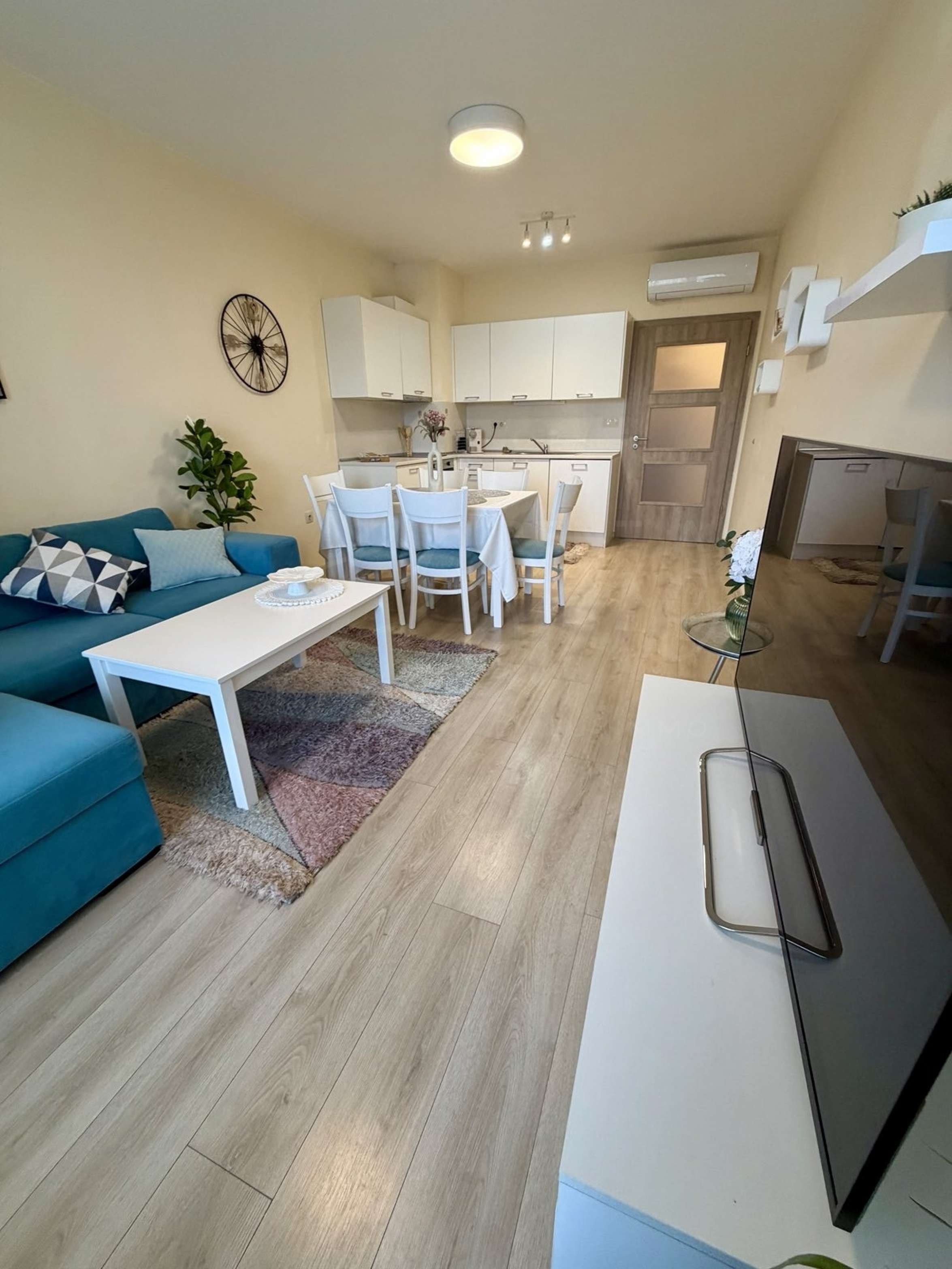 Жилището е напълно новообзаведено и оборудвано с всичко необходимо като мебели и електроуреди, готово е за нанасяне.