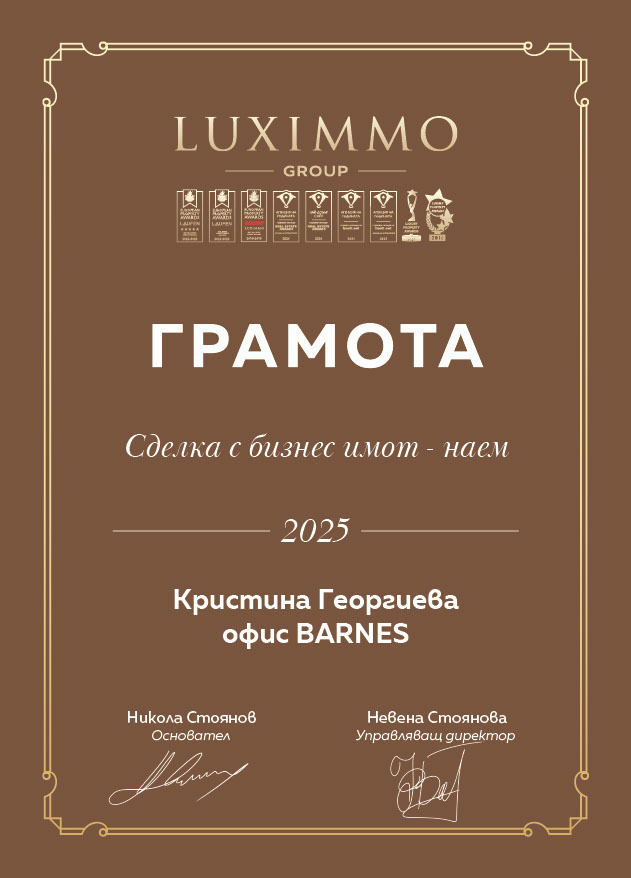 Кристина има опит в сферата на търговията, който придобива чрез развитието на собствен уебсайт за дамско облекло и магазин за обувки в град Хасково. Тя изслушва внимателно клиентите си и с нея те могат да бъдат сигурни, че ще получат най-добрата консултация относно търсения имот. Водещ принцип в работата ѝ е подреждането на приоритети спрямо нуждите на клиента.